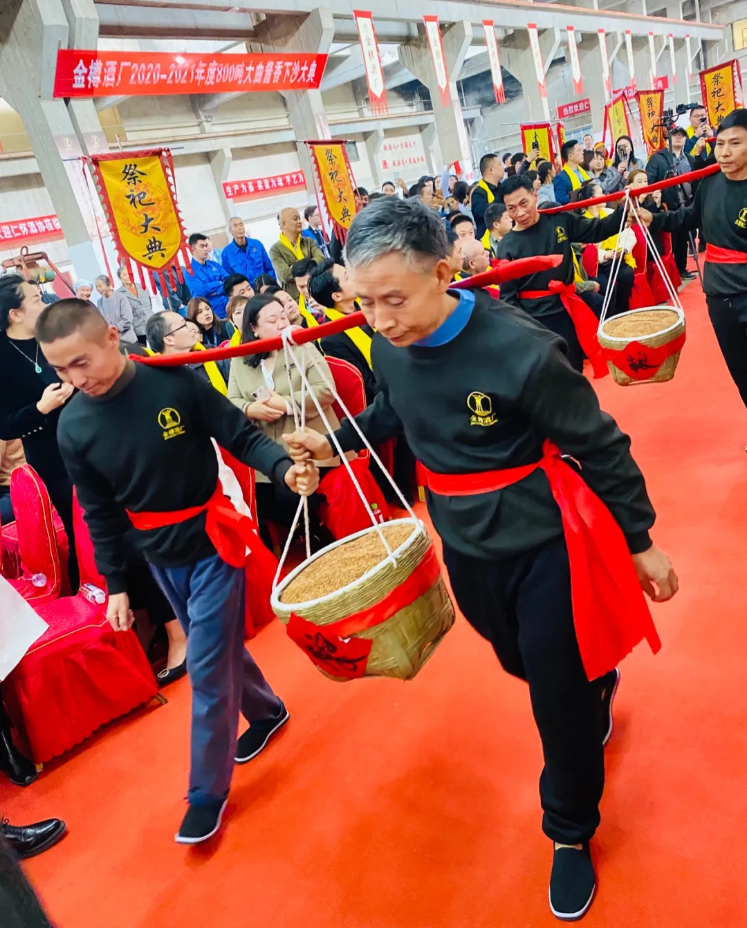 董事长吴总表示:“下沙对金樽酒厂而言,意味着一年一度的酿造周期又开始了。酒的品质从原料抓起,我们要确保每一粒高梁都来源于当地生产的红樱子糯高梁,坚持古法,坚持时序,坚持天地合一,真正酿造出代表国酒之乡的国粹酱香之佳品。”