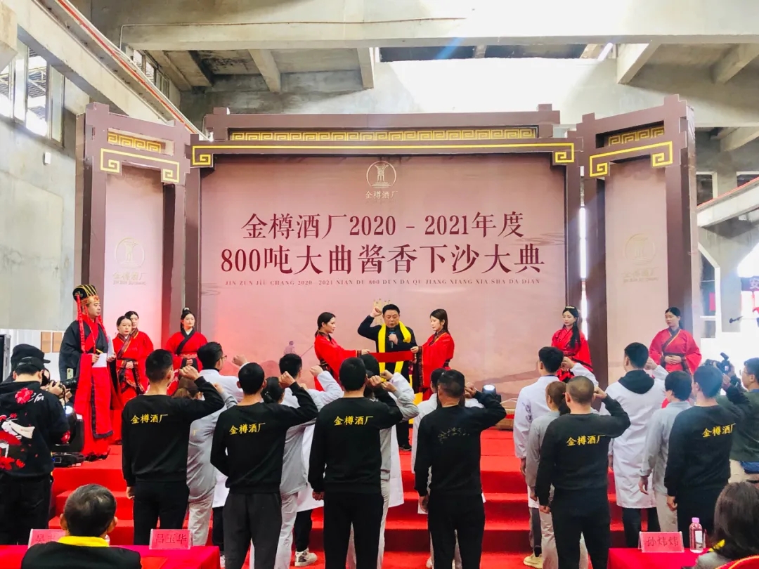 赤水悠悠飘酒香,顺天应时产佳酿。11月8日,金樽酒厂2020-2021年度800吨大曲酱香下沙大典在金樽酒厂制酒一车间隆重举行。