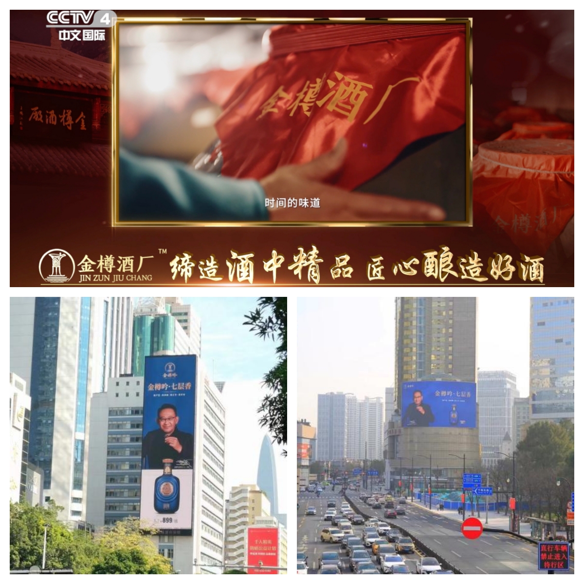 多年来,金樽酒厂坚持以央视投放为核心、以机场广告、机舱广告等品牌高度广告为辅,全面提升品牌端的知名度和认可度,实现高端化和品牌化。此外,结合地面各大城市商圈户外大屏广告,形成多维、全方位的广告曝光,在合作端为合作商带来品牌背书,提高地域内的品牌能见度。
